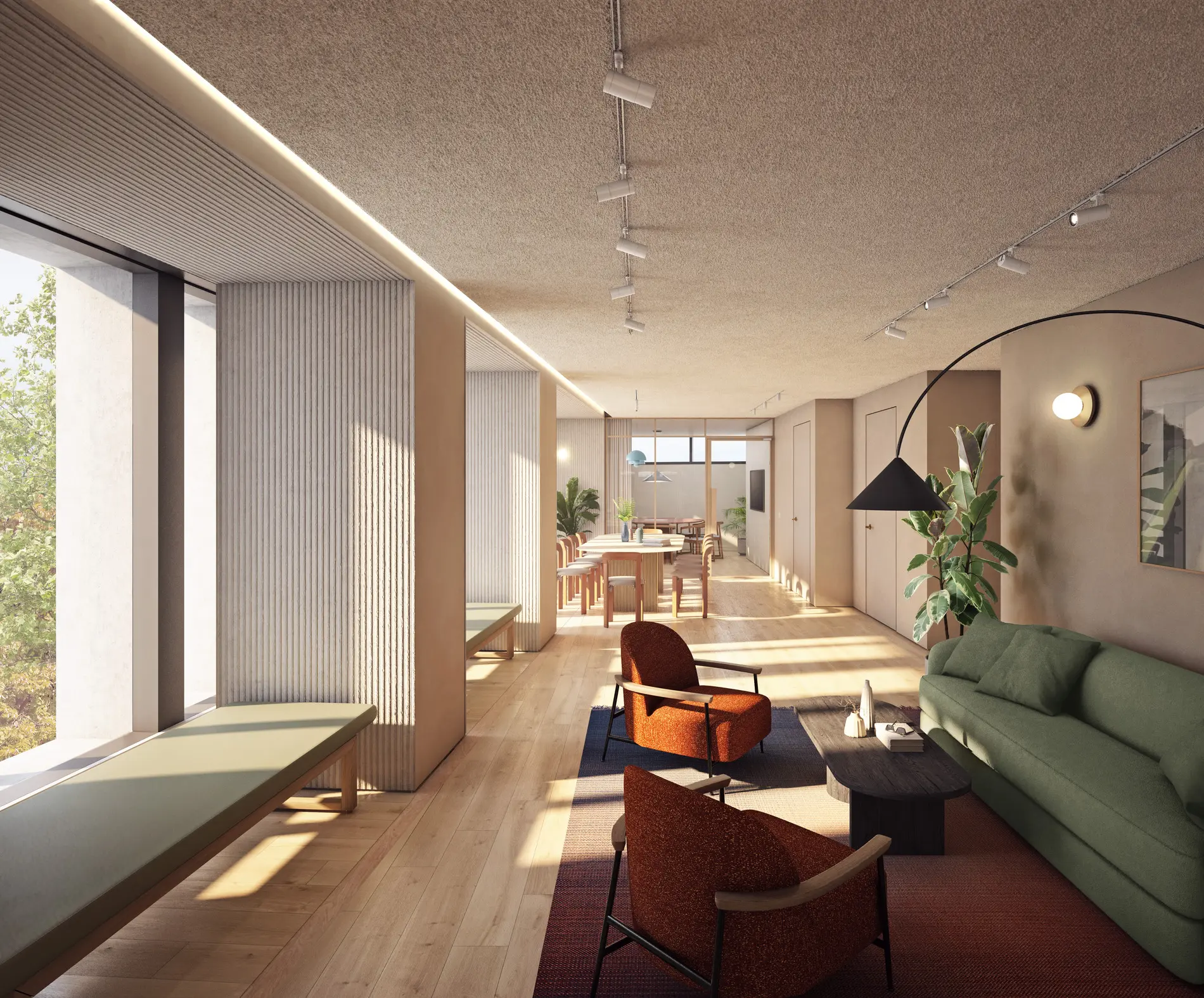 A 100% renewable energy supply with rooftop solar, air source heat pumps, and natural ventilation;